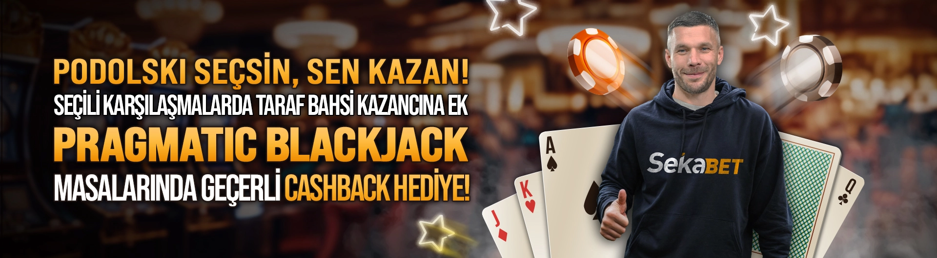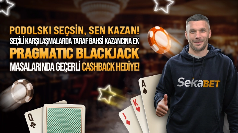 3 hafta üst üste Podolski seçimlerinden kazanan kupon yap, Pragmatic Play blackjack masalarında 5.000 TL cashback kazan!